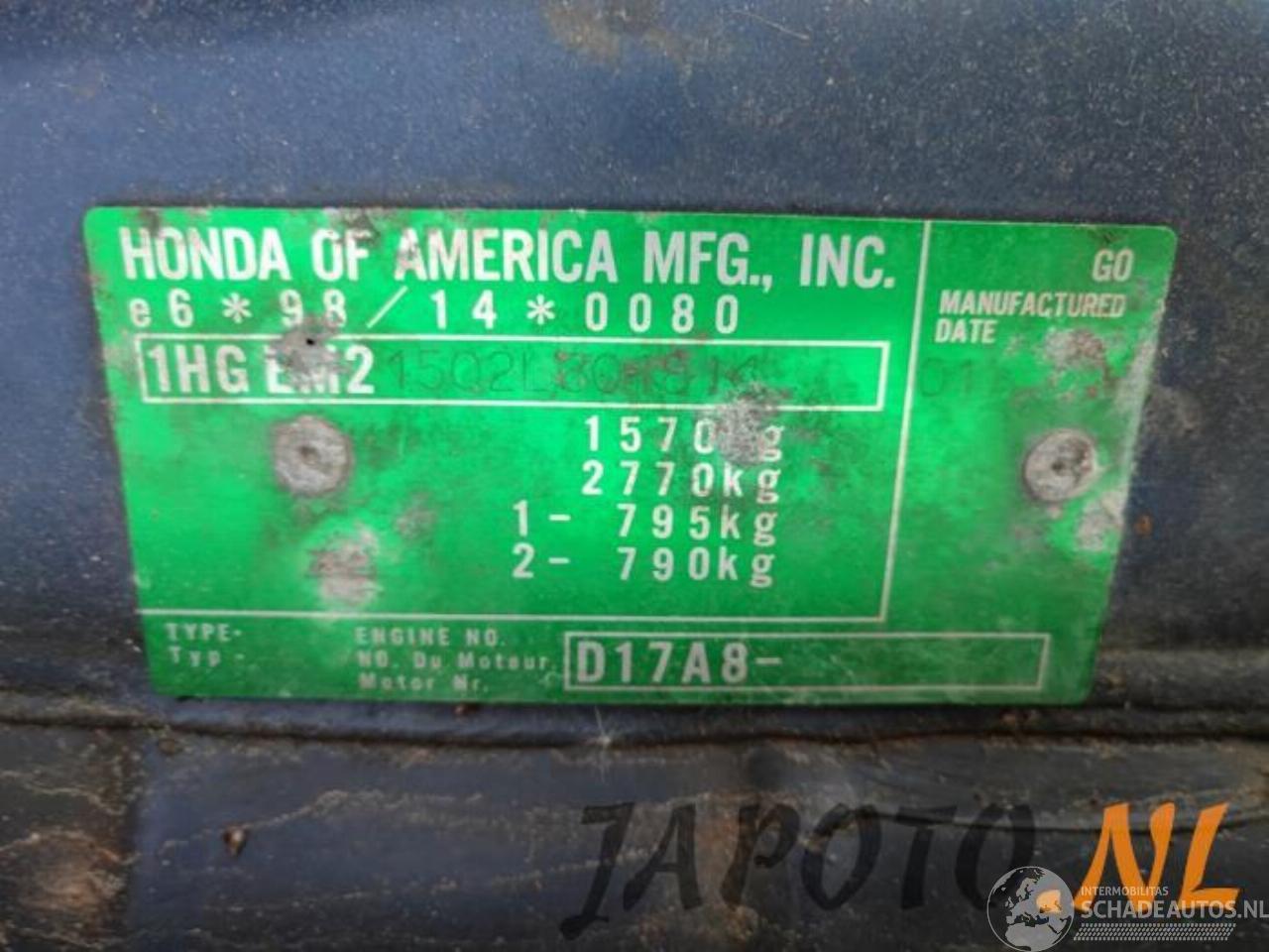Model: CIVIC Civic (EM), Coupe, 2001 / 2005 1.7 16V ES VTEC