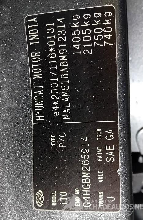 Model: I-10 I10 (F5) Hatchback 1.1i 12V (G4HG5) [51kW] (04-2011/12-2013)