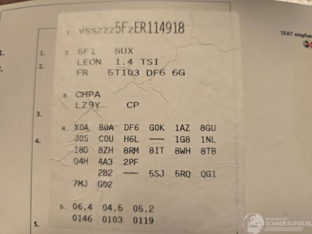 Model: LEON Leon (5FB), Hatchback 5-drs, 2012 / 2020 1.4 TSI Ecomotive 16V