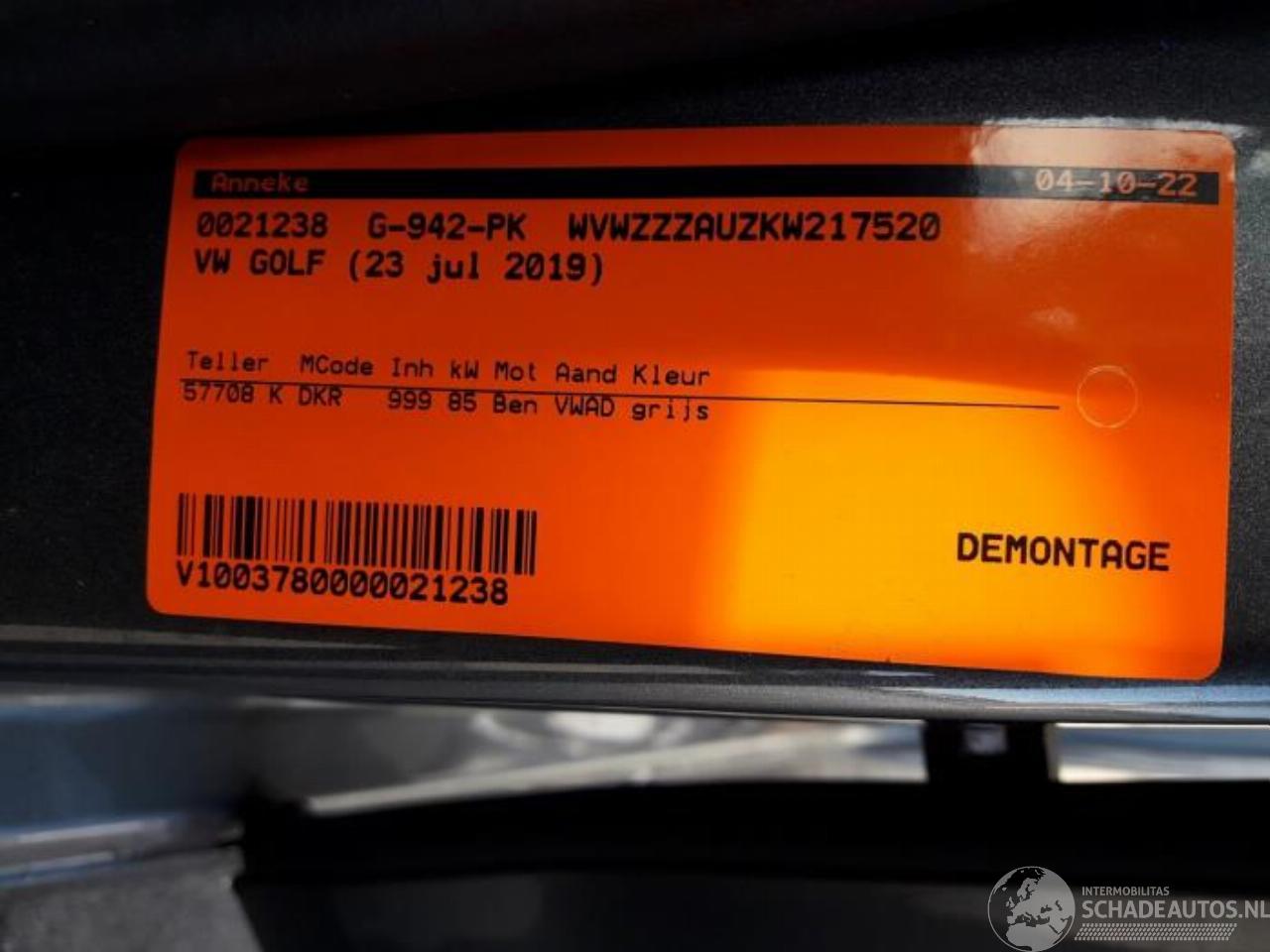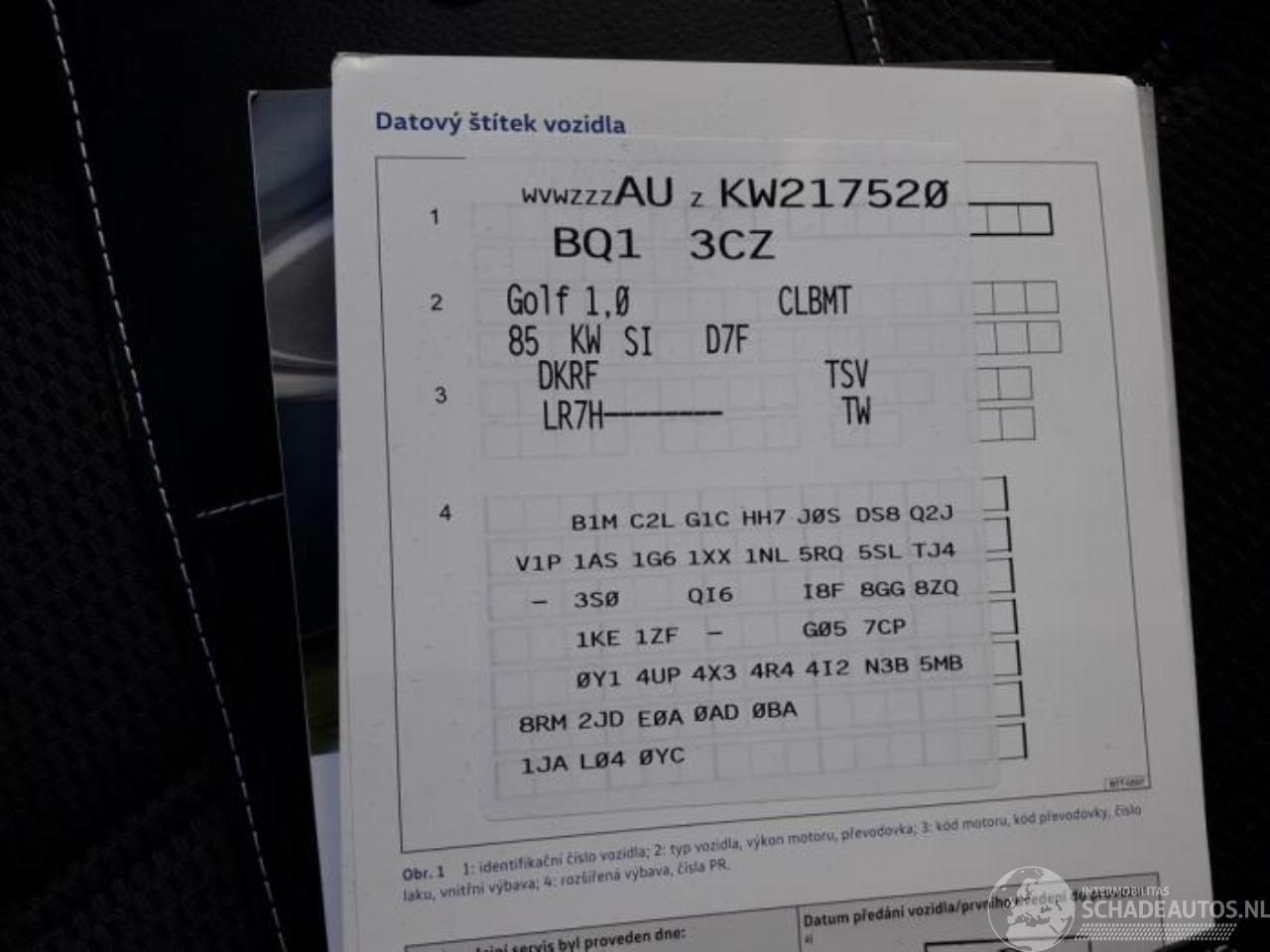Model: GOLF  Golf VII (AUA), Hatchback, 2012 / 2021 1.0 TSI 12V BlueMotion
