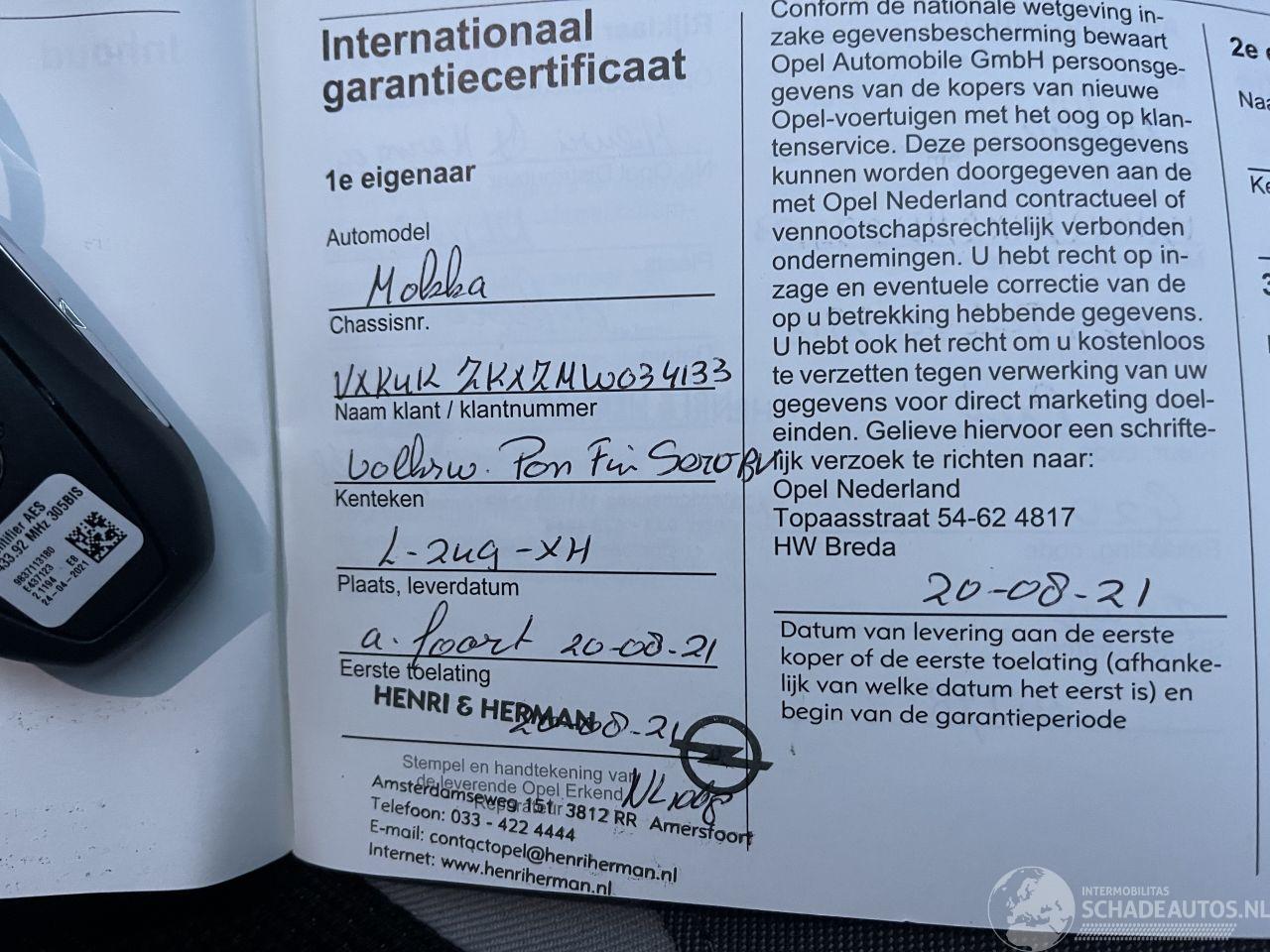 Model: MOKKA-E 50-kWh 11kW Bl. Business Elegance Aut 136pk - Nap - Stuurverwarming - Navi - Camera - Line + Side Assist - Keyless - Virtual - 2x Laadkabels - Org NL