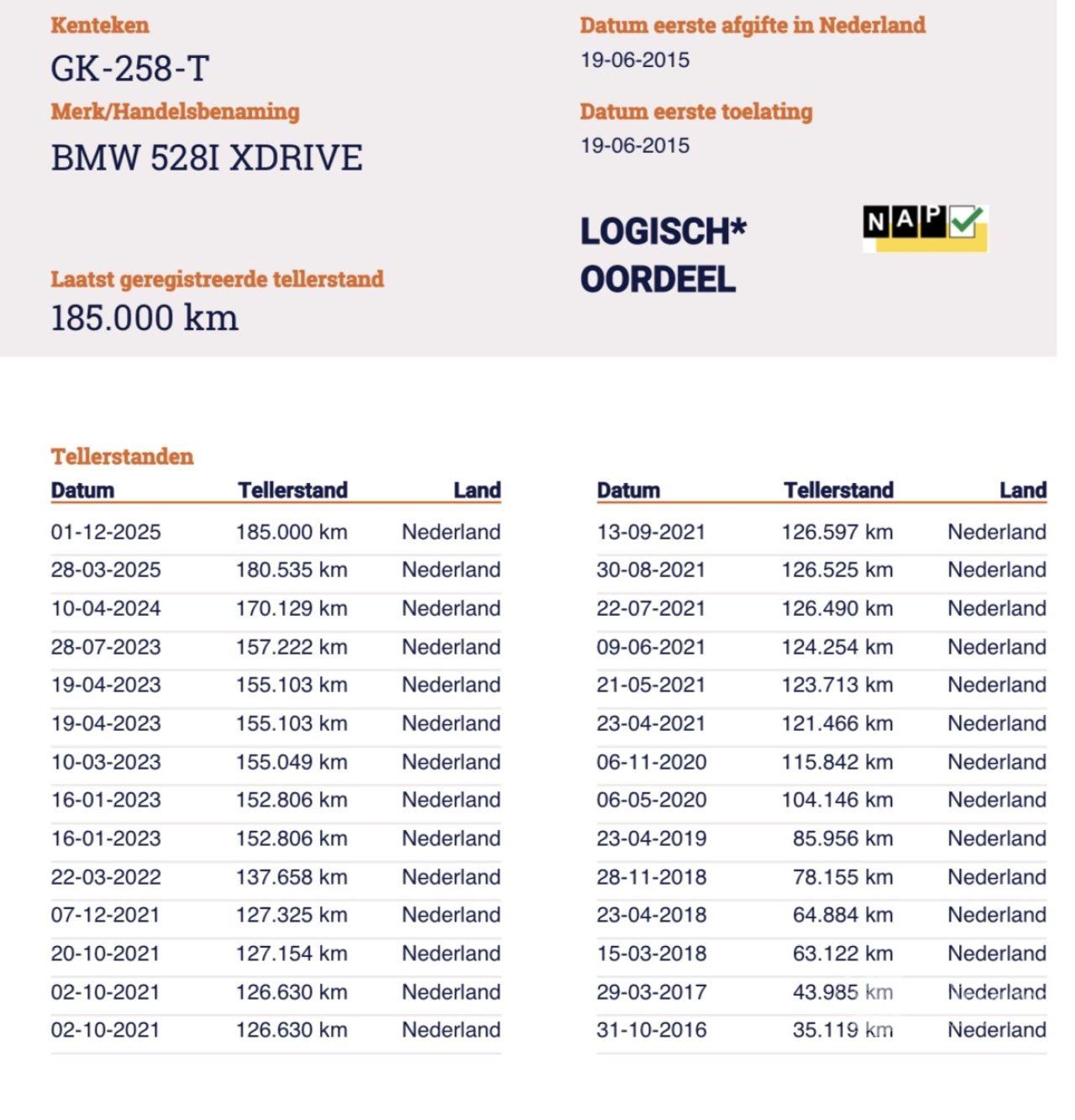 Kilometerstand: 185.000 KM