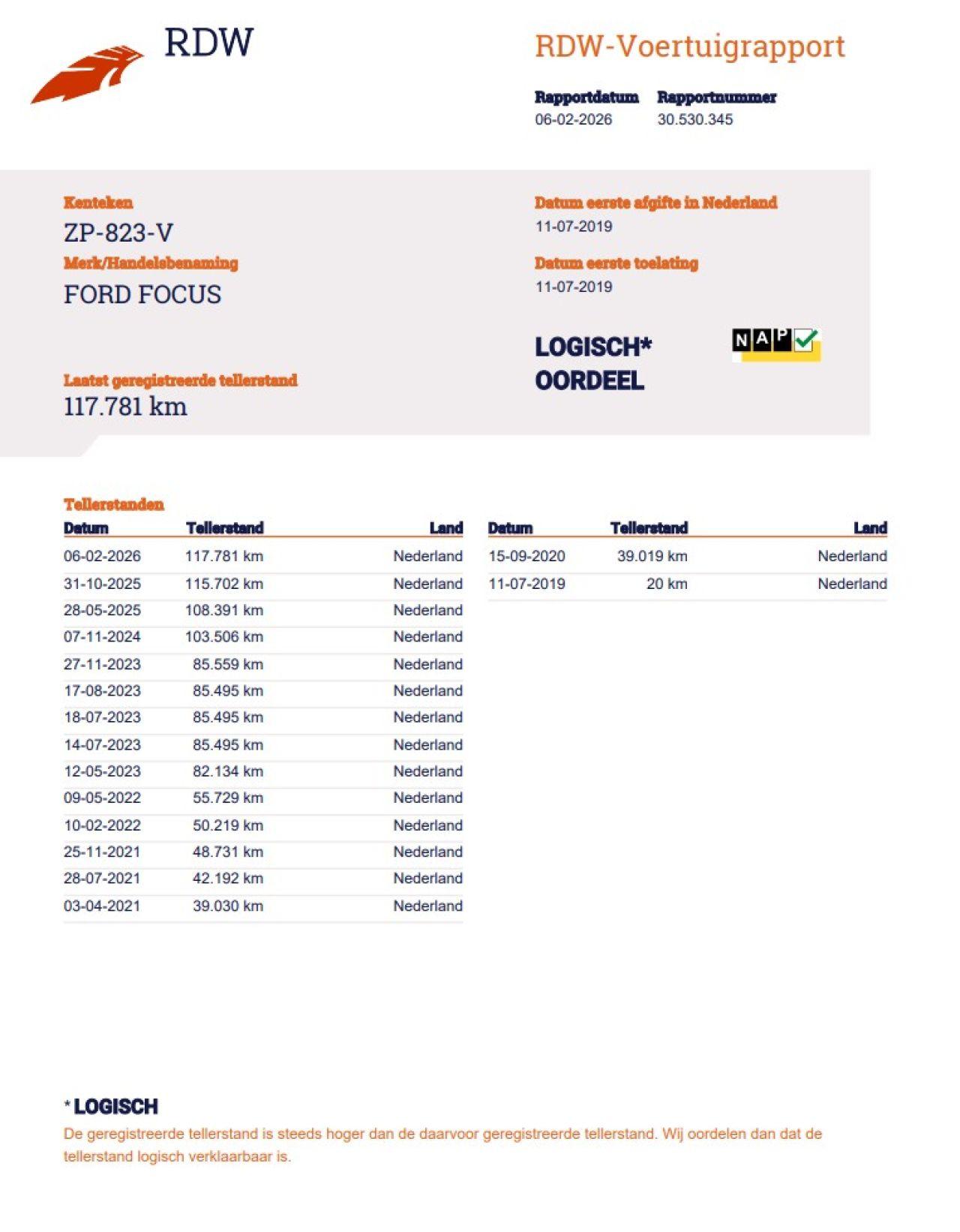 Verificación del kilometraje (NAP)