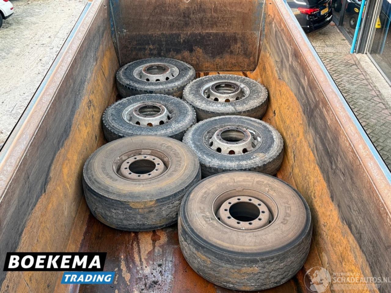 Achteras 1: Bandenmaat: 325/95R24; Dubbellucht; Max. aslast: 11500 kg; Bandenprofiel linksbinnen: 40%; Bandenprofiel linksbuiten: 40%; Bandenprofiel rechtsbinnen: 40%; Bandenprofiel rechtsbuiten: 40%