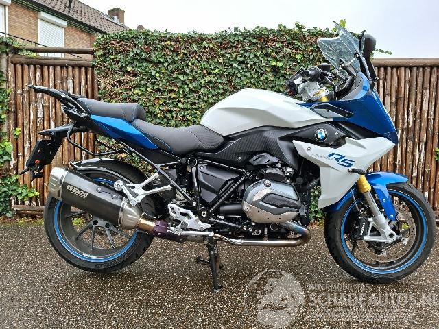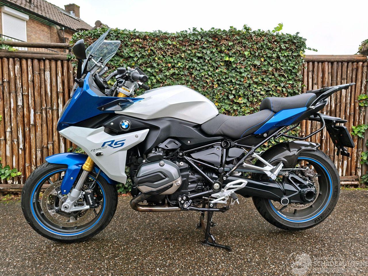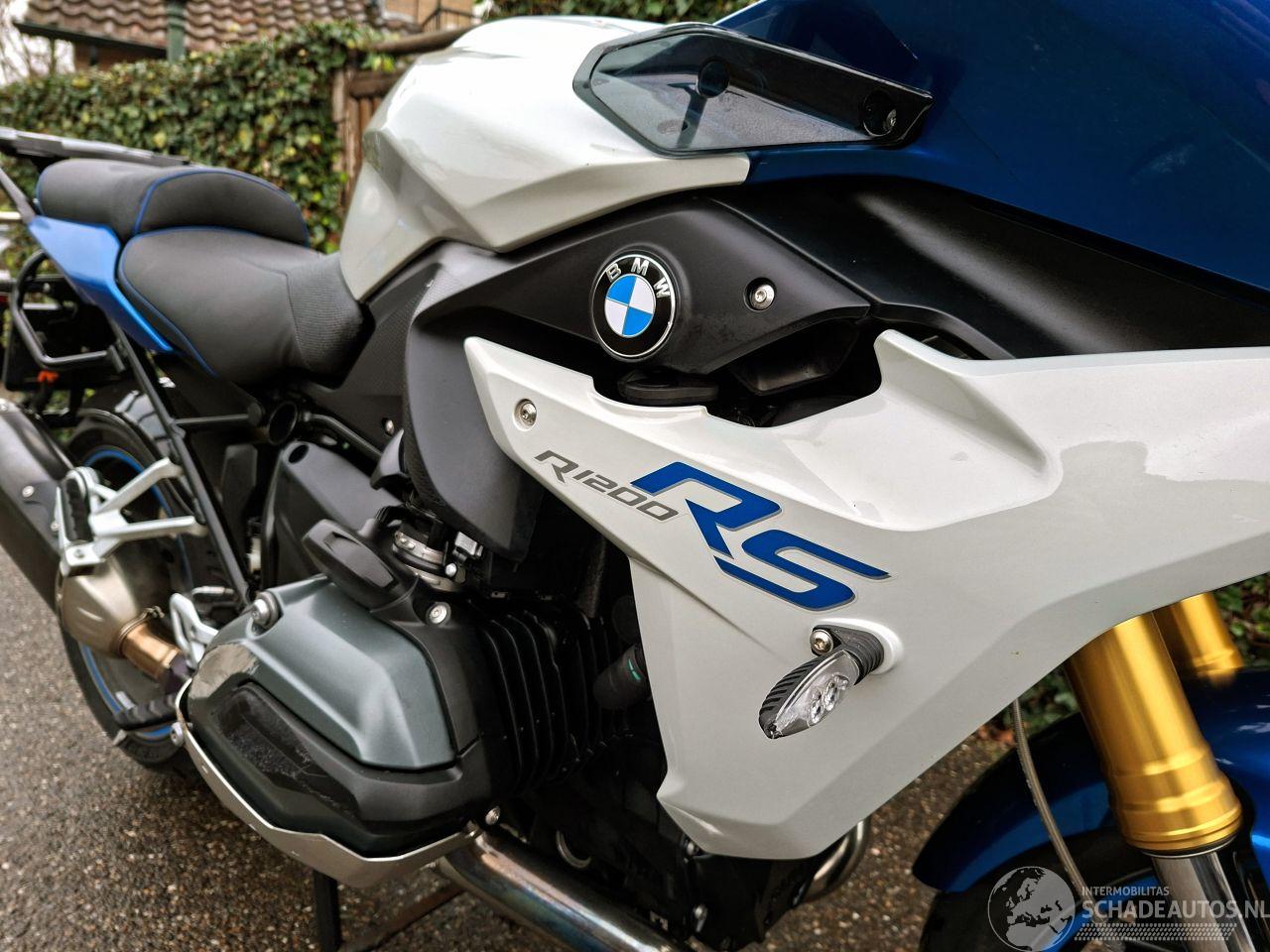 Deze BMW R 1200 RS uit 2015 is een krachtige 1200cc sporttourer met het kenmerkende boxerblok en cardanaandrijving. De blauw-witte uitvoering met Bos performance uitlaat