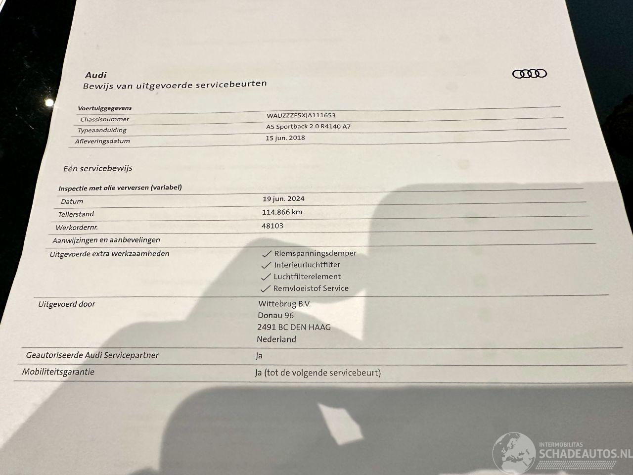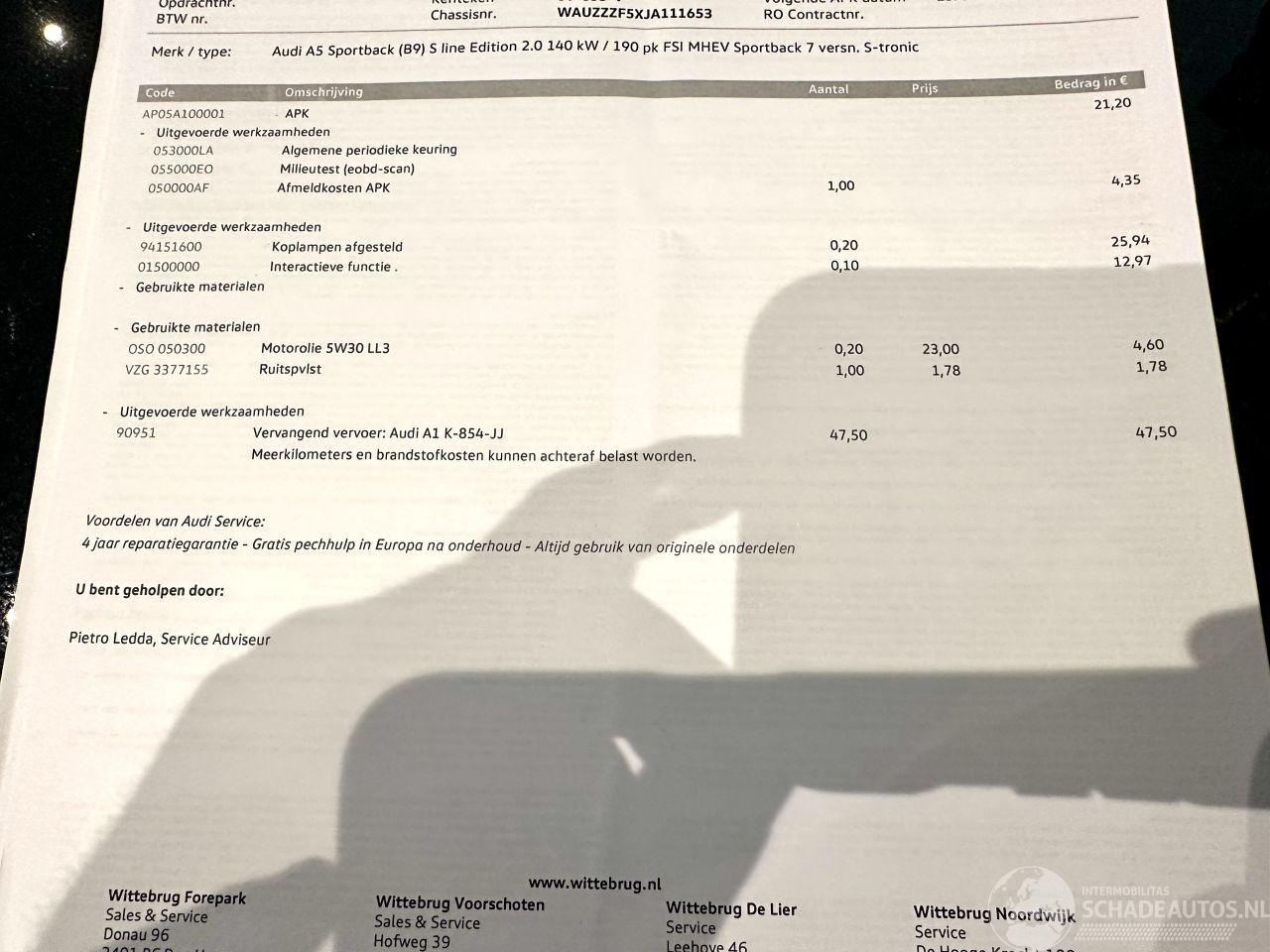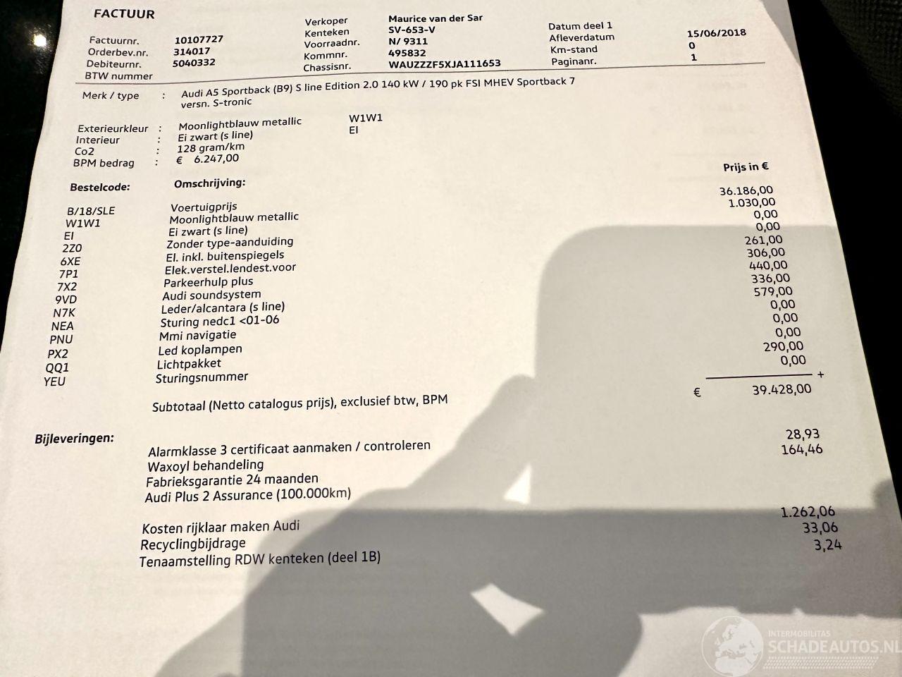 Bomvolle Sport Edition - AUTOMAAT + F1 flippers op stuurwiel - 1e eigenaar - complete historie van A tot Z aanwezig - DEALER ONDERHOUDEN - 3x S-Line - keyless entry + start - org NL auto + NAP + 2x sleutels op afstandbediening erbij - elektr achterklep - pdc voor + achter - xenon + led koplampen + led achterlichten - elektr achterklep - zwarte hemelbekleding - sportonderstel - metallic lak - 18 inch lmv - navi professioneel - 3 zones airco (climate control) + cruise control - licht + regensensor + aut dimmend binnenspiegel - audi presense botswaarschuwing (front assist) - line assist - verlichte instaplijsten - half lederen sportinterieur - S Line binnen + buiten - navi professioneel - in hoogte verstelbare + orthopedische stoelen voorzijde - bomvolle A5 Sportback 2.0 TFSI MHEV Sport S-line Edition die top is onderhouden