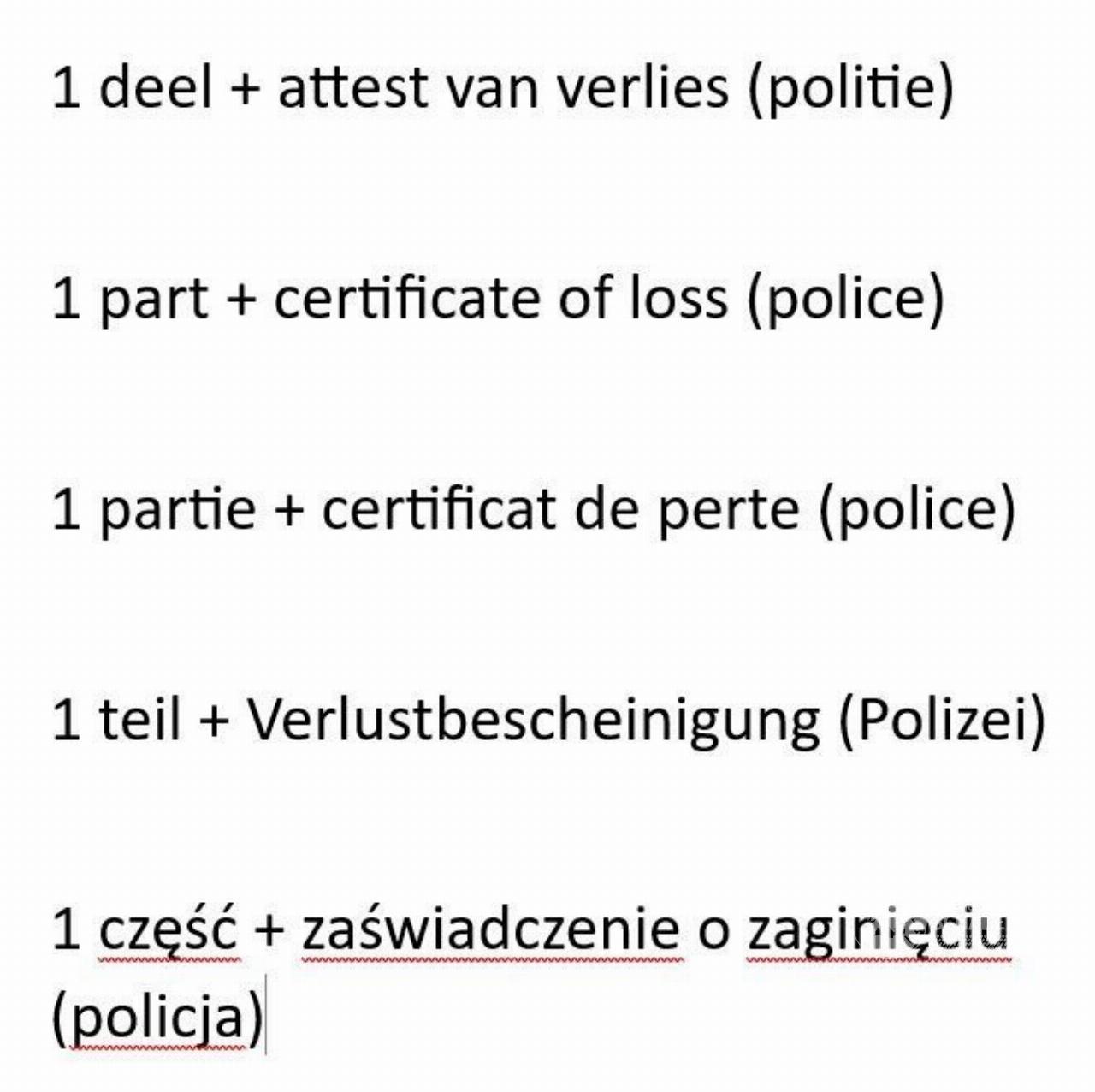 1 PART PAPERS + 1 PART POLICE NO COC