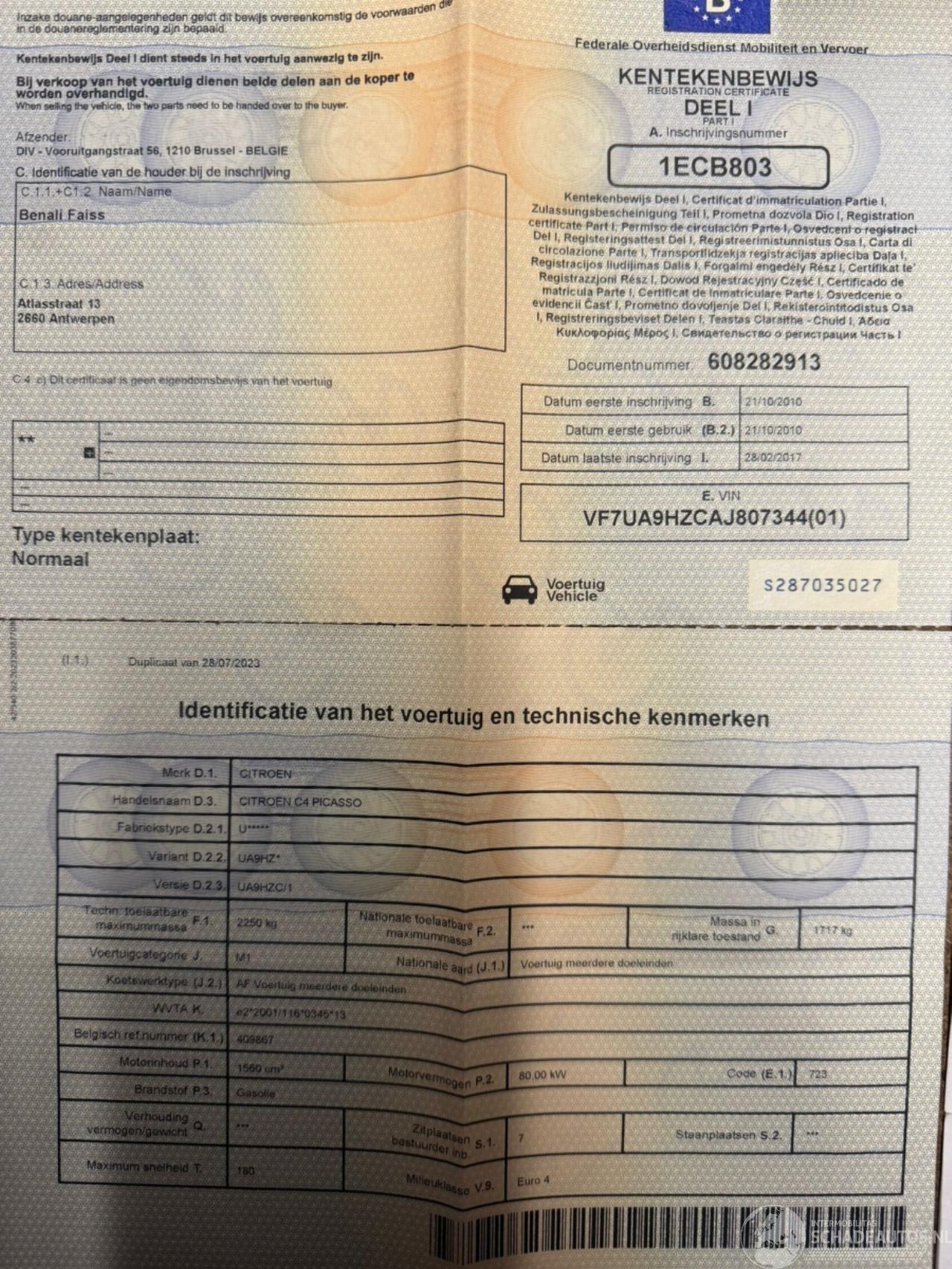 Reg. Certificate(I+II)=OK, C.O.C=OK, CarPass=OK