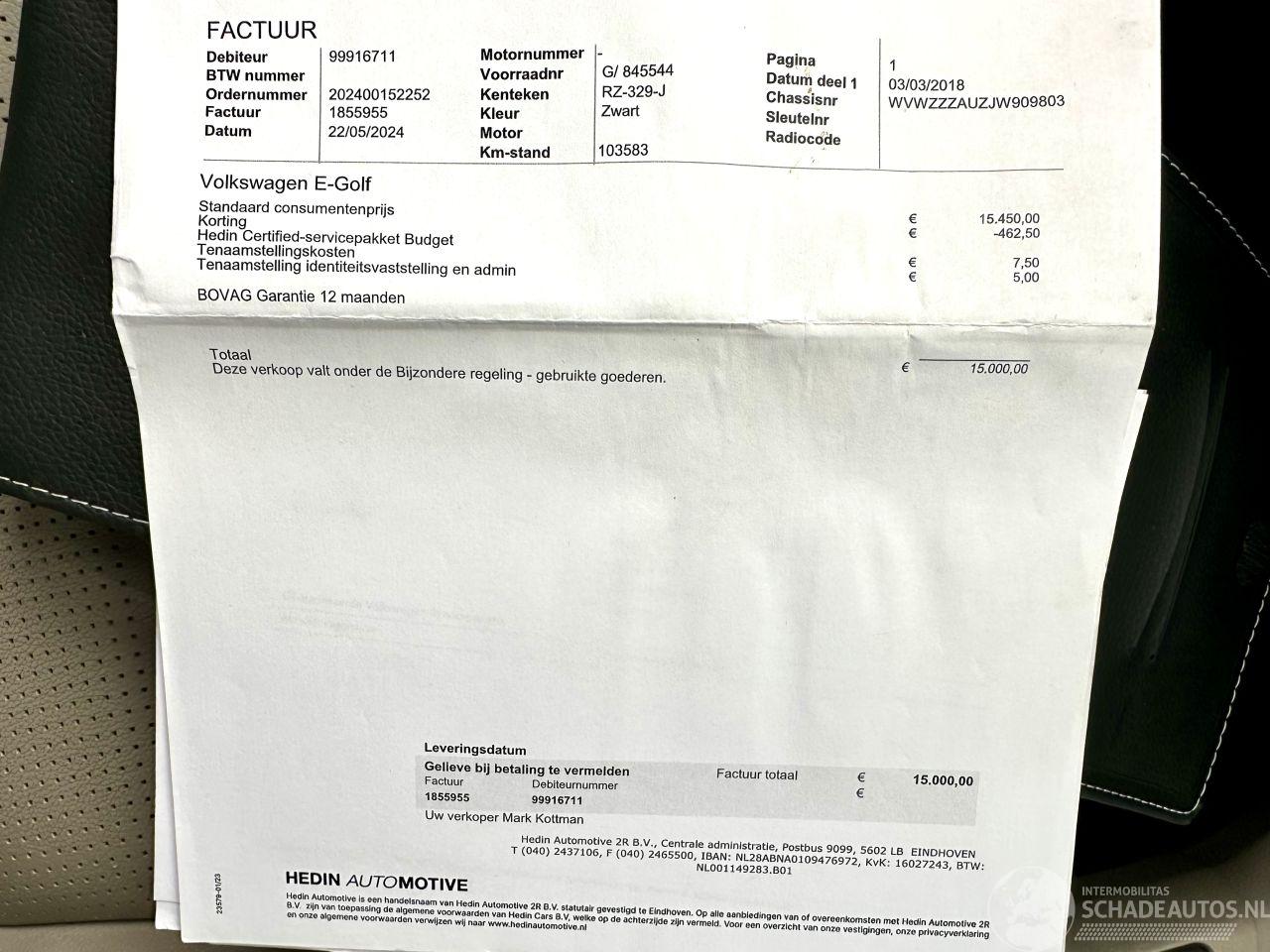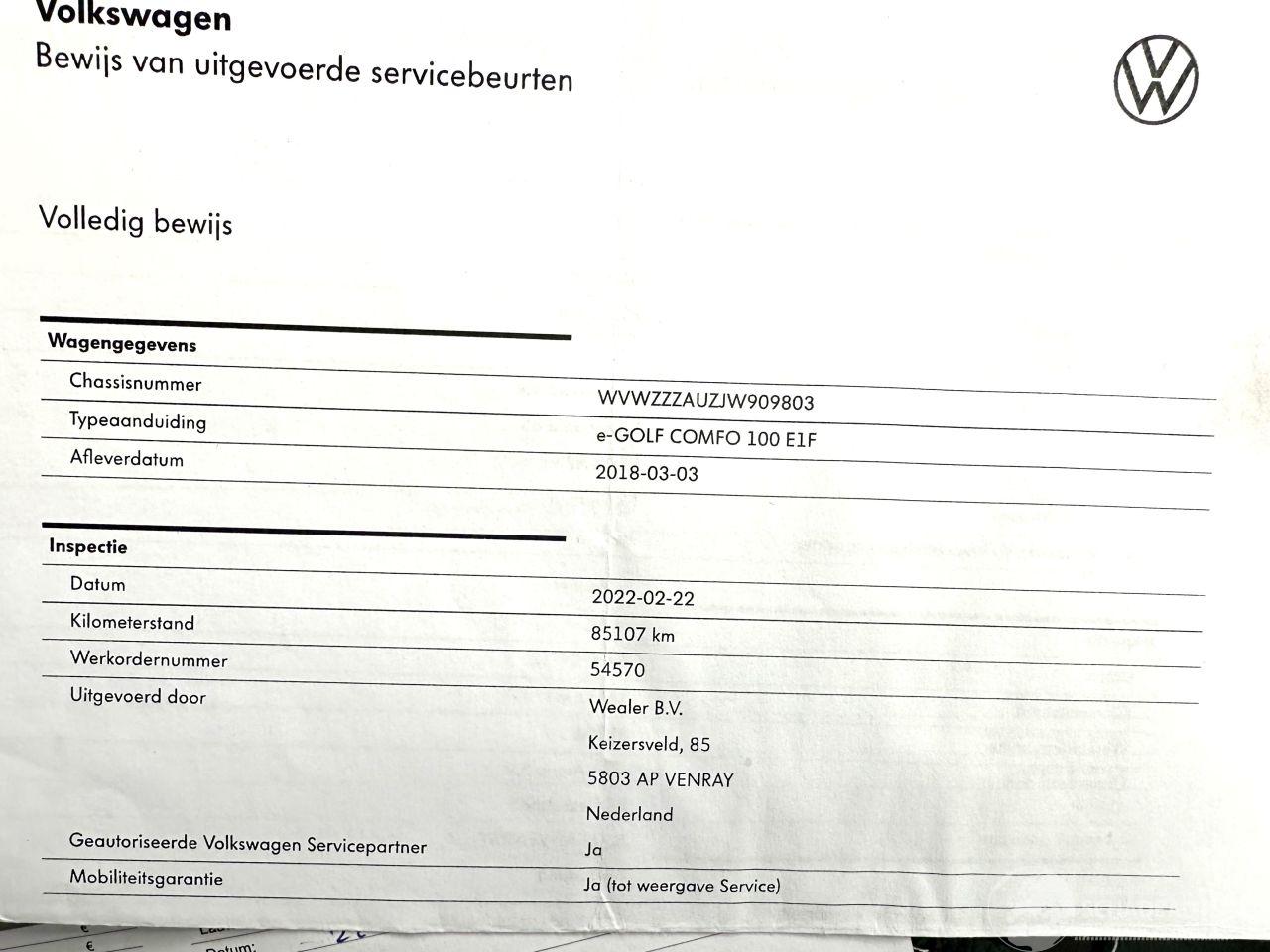 Scherpe meeneemprijs - Bomvolle GOLF 7.5 FACELIFT Highline pakket - slechts 133dkm NAP gelopen - Deze Volkswagen e-Golf automaat 5drs komt uit 2018 en kostte toen € 46.172 euro. Deze originele Nederlandse personenauto staat sinds 2018 op kenteken