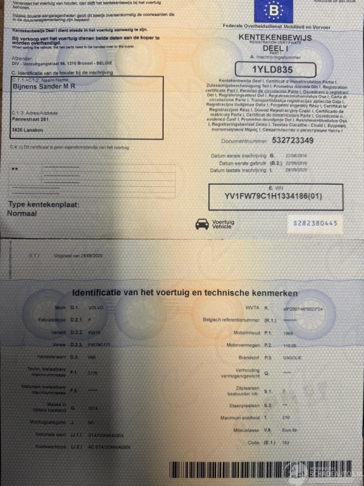 Vehicle identification number: YV1FW79C1H133****