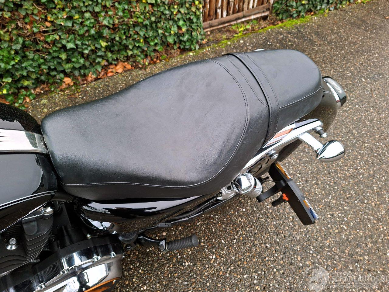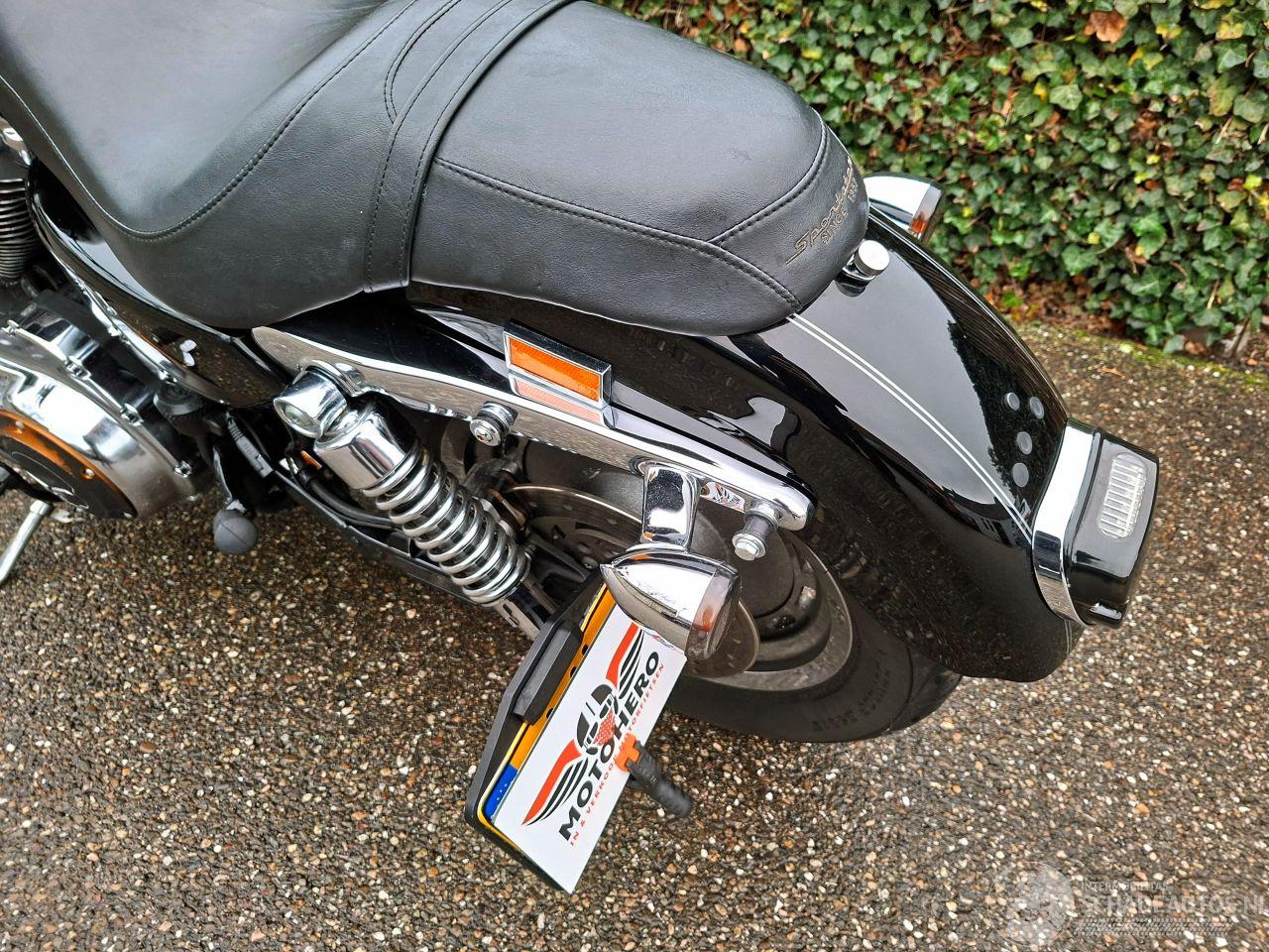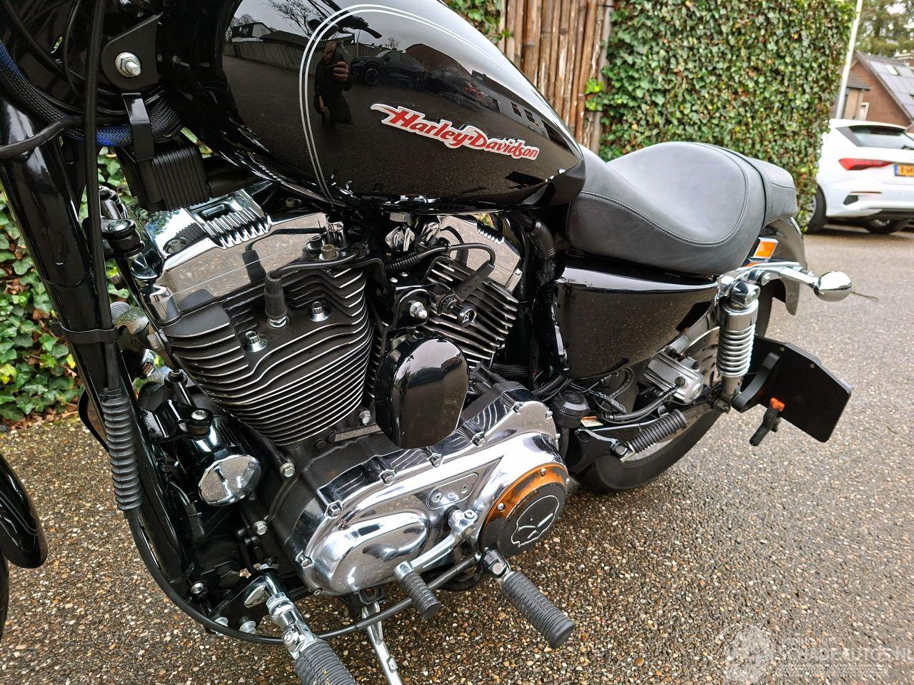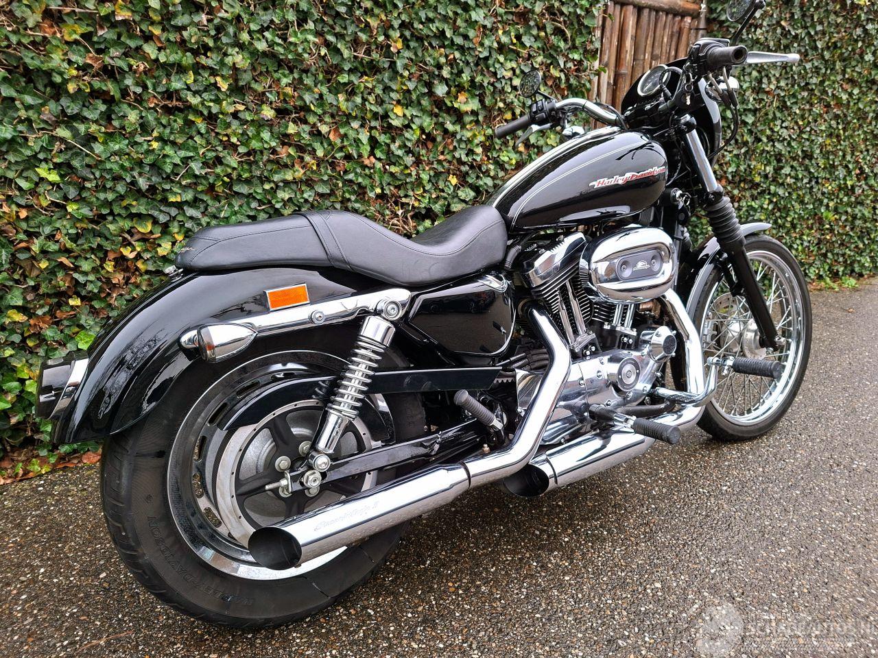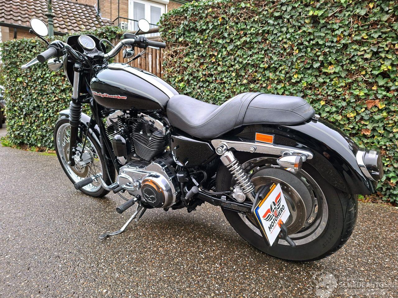 Stoere Harley-Davidson 1200 Sportster Custom uit 2004 met 1200cc V-twin blok. Afgewerkt in diepzwart met kleine kopkuip