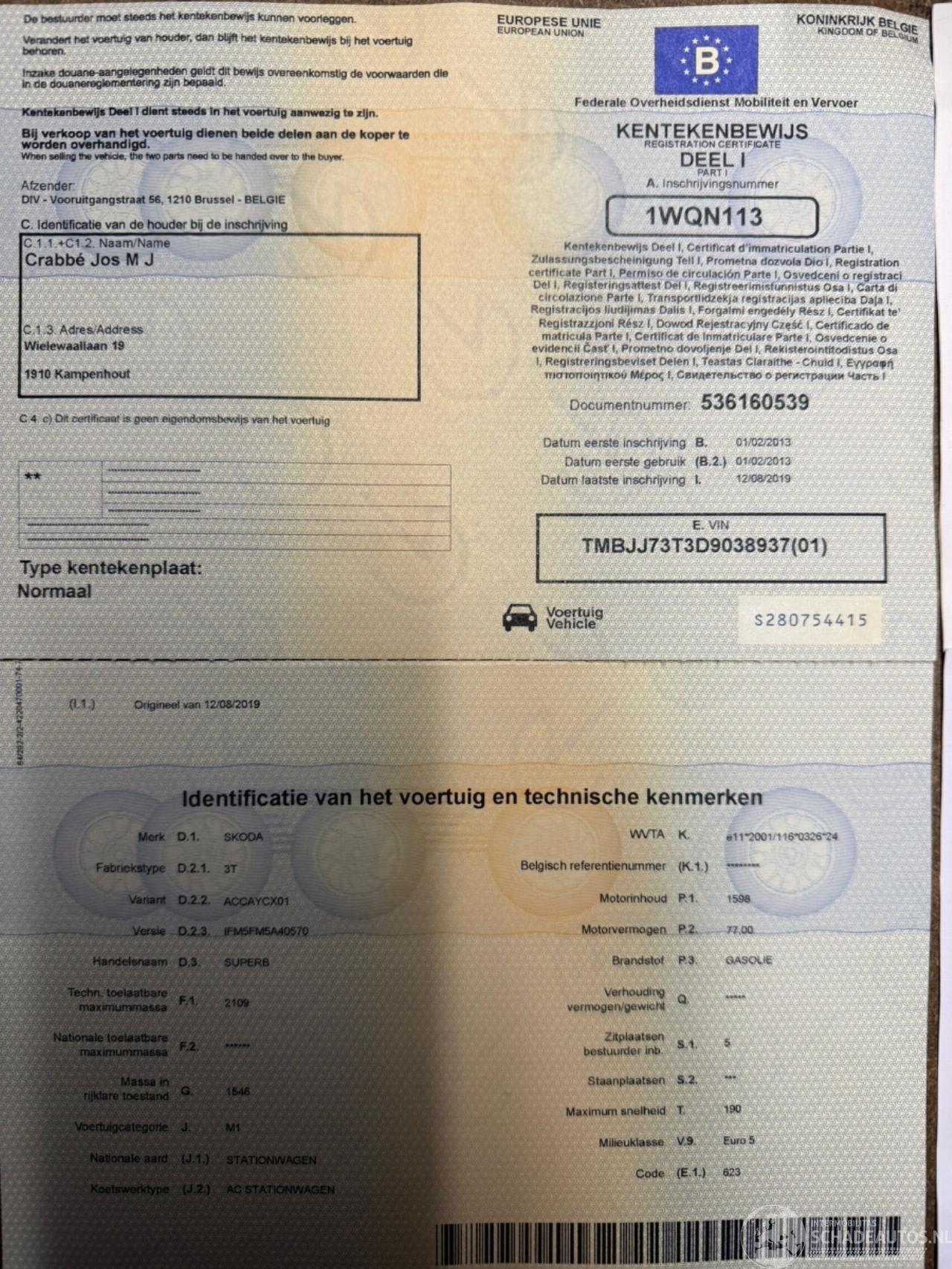 Keuring Na Ongeval (in België) / Kontrolle nach Unfall (im Belgien)