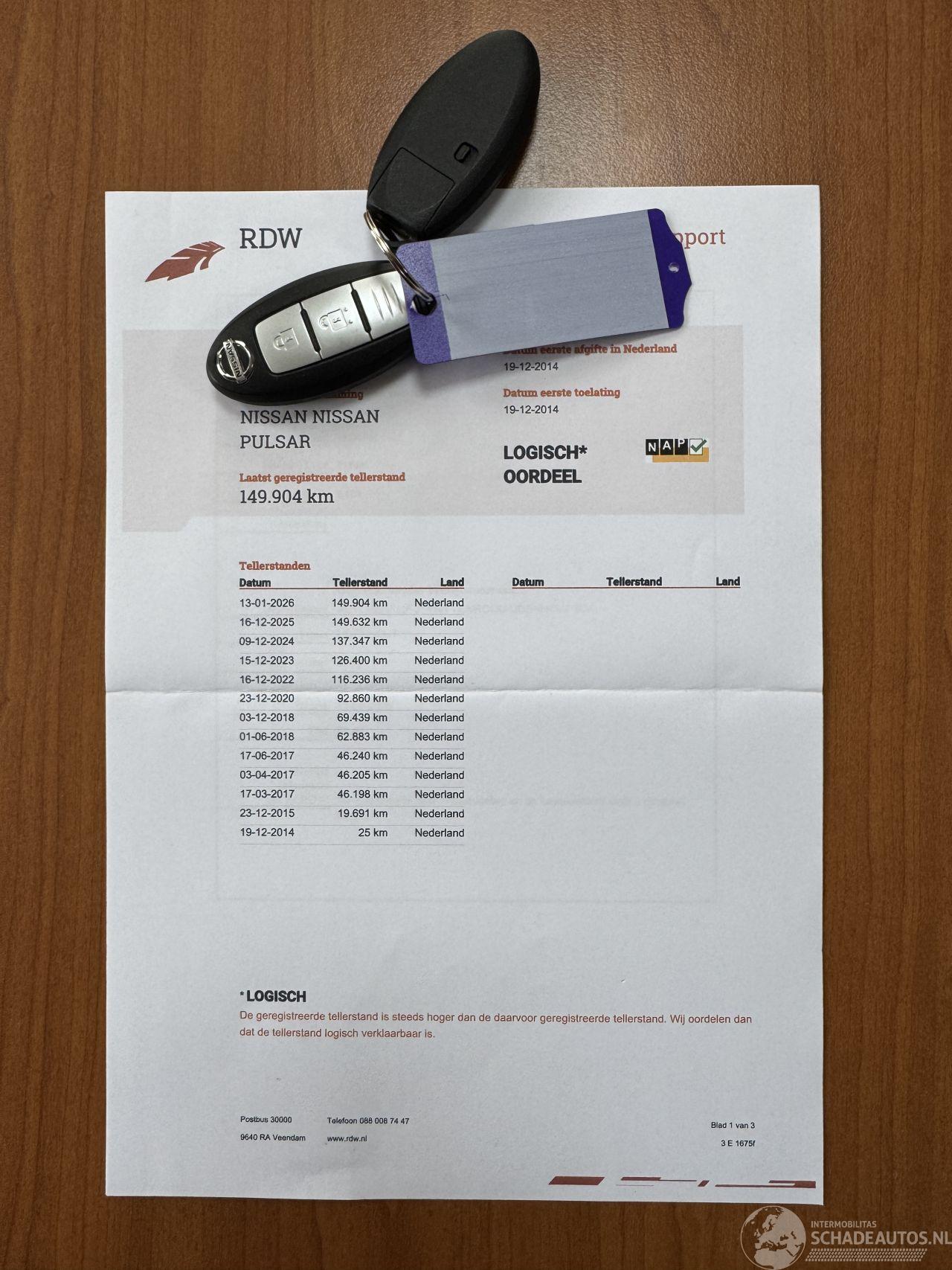 Origineel Nederlandse Nissan Pulsar met 149904 kilometer + N.A.P. alle boekjes en sleutels erbij.