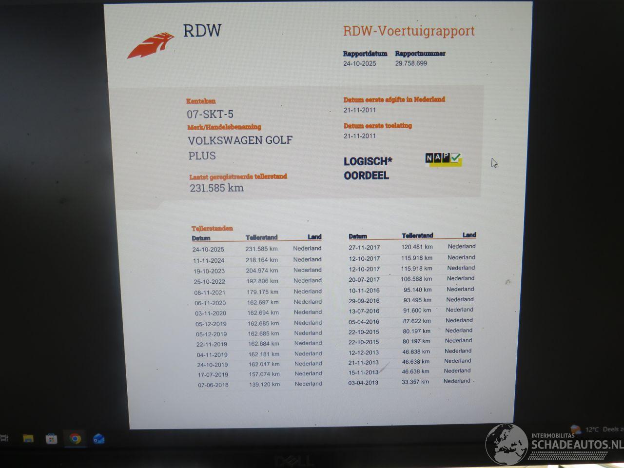 Avarii VOLKSWAGEN VOLKSWAGEN GOLF PLUS € 2.350